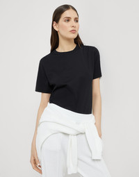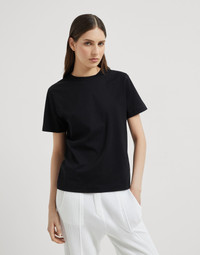 An essential element of the year-round wardrobe, this cotton jersey T-shirt is a versatile base to be paired with any type of look. A fine row of shiny monili embroidered on the back of the garment adds a precious sparkle in true Brunello Cucinelli style. MATERIALS Research on the best materials elevates the sporty flavor of the pure cotton jersey inspired by the male wardrobe. The fabric is comfortable, lightweight and extremely pleasing to wear, perfect for every season. DETAILS Crew-neck Flat pressed hem Nickel-free monili decoration 100% COTTON