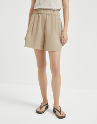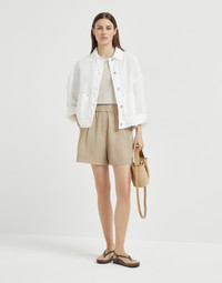 A sophisticated mix of styles defines these cotton organza baggy shorts. The garment’s casual attitude is paired with the sartorial inspiration of the double pleats, while the lightweight fabric adds a distinctly summery, feminine feel. The pull-on fit provides added comfort. MATERIALS The finish of the ultra lightweight cotton organza gives the texture a crisp and slightly irregular effect. DETAILS Pull-up trousers Front pockets Back patch pockets Double pleat Silk-blend crepe lining 100% COTTON