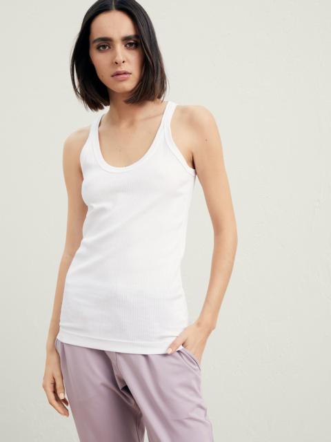 Essential, versatile and comfortable, this cotton rib knit jersey top is a basic piece to help build your own outfits. The distinct ribbing gives the garment an elegant look, while a fine trail of shiny monili on the back of the neck completes the top with the iconic embellishment of the Brunello Cucinelli collections. MATERIALS A small percentage of spandex perfects the lightweight and soft ribbed cotton jersey’s comfort. DETAILS Off-the-shoulder style Flat pressed hem Nickel-free monili decoration 100% COTTON