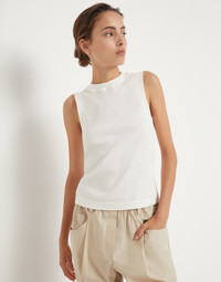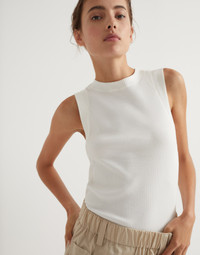 Cotton ribbed jersey top with monili