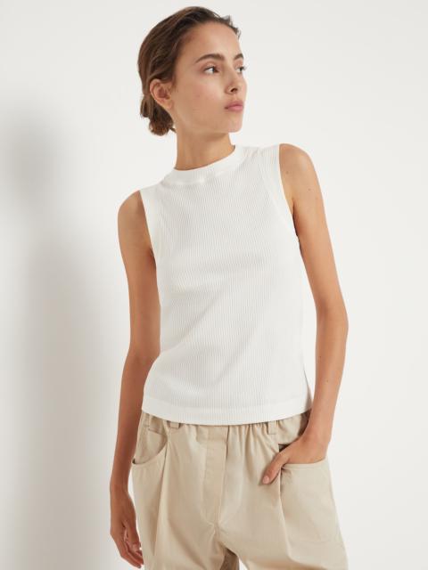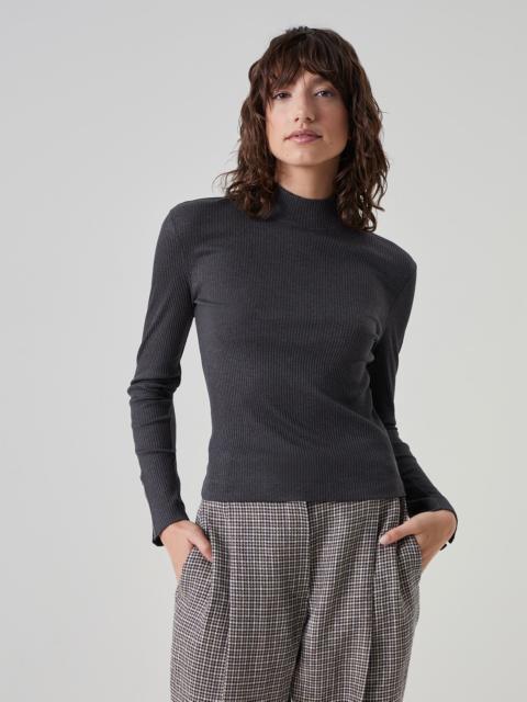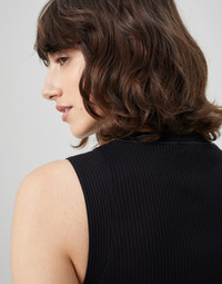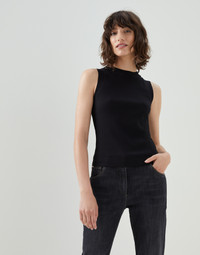 Essential, versatile and comfortable, this new cotton ribbed jersey top is a basic garment to create your own outfits. The ribbing gives the piece an elegant look, while the fine row of shiny monili behind the neck adds a delicate sparkling note and a feminine touch to this top. MATERIALS Inspired by menswear, the pure cotton jersey showcases the classic ribbed texture and offers a very comfortable, lightweight and extremely pleasant hand that is perfect for any season. DETAILS Crew-neck Nickel-free monili decoration 100% COTTON