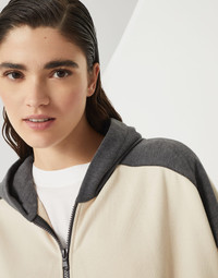Cotton smooth French terry hooded sweatshirt with zipper and shiny trim