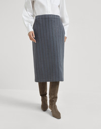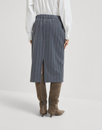 Cotton smooth French terry midi skirt with dazzling chalk stripe embroidery