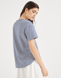 Cotton striped jersey T-shirt with shiny pocket detail