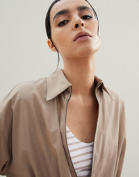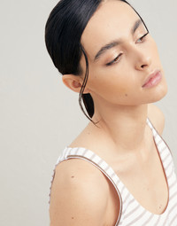 The contemporary proportions of this striped jersey top are enriched with sparkling details. On the edges of the shoulder straps, the embroidery of rows of monili adds a precious, feminine note to the casual style of the garment, which is characterized by the lightweight fabric’s striped pattern and a slightly cropped cut. MATERIALS A classic striped pattern in the season’s colors enriches the soft cotton jersey, a lightweight fabric with a smooth, fluid hand. DETAILS Wide neckline Off-the-shoulder style Nickel-free monili decoration 100% COTTON