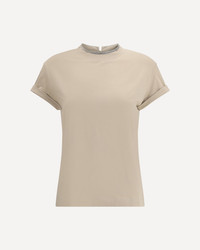 Cotton T-Shirt by Brunello Cucinelli, crewneck, keyhole back button closure, brand's iconic contrasting applique jewels on crewneck, regular fit. DETAILS - Sku: M0T18BD200_C8539 - Season: AW25 - Fit: Regular - Composition: GENERAL 7% Elastane 93% Cotton - MADE IN ITALY