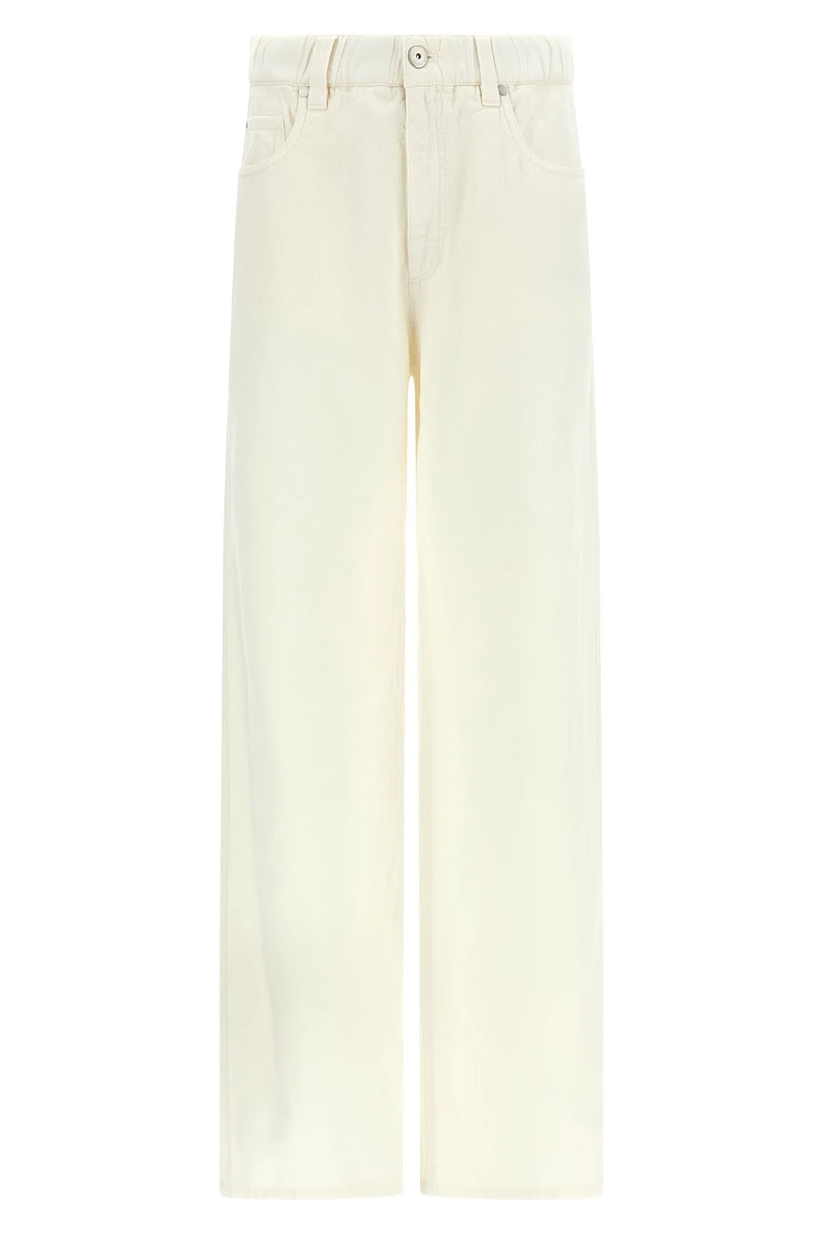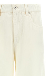 cod. ML996P4053C1101 Linen blend cotton trousers, 5-pocket model with elastic waistband, loops with Monile detail, slightly wide straight leg. Color: Beige Size & Fit: True to size fit Composition: 60% cotton, 40% linen Made in: Italy