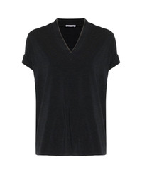 dark grey stretch-cotton jersey texture signature Monili chain detail V-neck short sleeves turn-up cuffs straight hem Composition: Cotton, 93% , Spandex/elastane, 7% Made in: Italy Color: Grey Size and fit: - This piece fits true to size. We recommend you get your regular size - Model is 1,75m / 5ft 8in wearing size S Model number: MPT18BD222C055