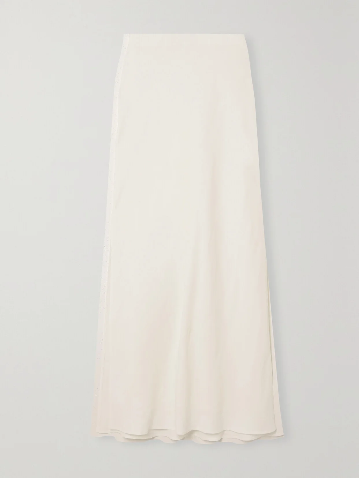 Brunello Cucinelli's collections are filled with timeless, versatile styles like this skirt. It's cut from smooth white crepe and lightly skims the figure as it falls to a maxi length. Highlight the side slit by wearing yours with knee-boots.