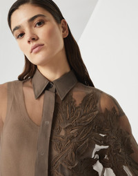 Crispy silk shirt with herbarium appliqué