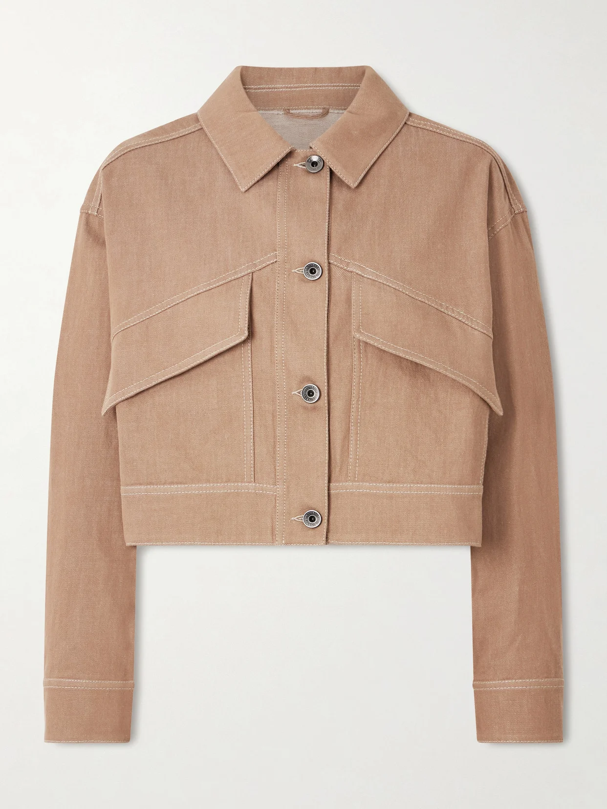 Brunello Cucinelli's jacket effortlessly merges utility style and elegance. Made in Italy from cotton-twill, it has a cropped profile and angular flap pockets traced with contrast topstitching. Team yours with denim or tailored pants and loafers.