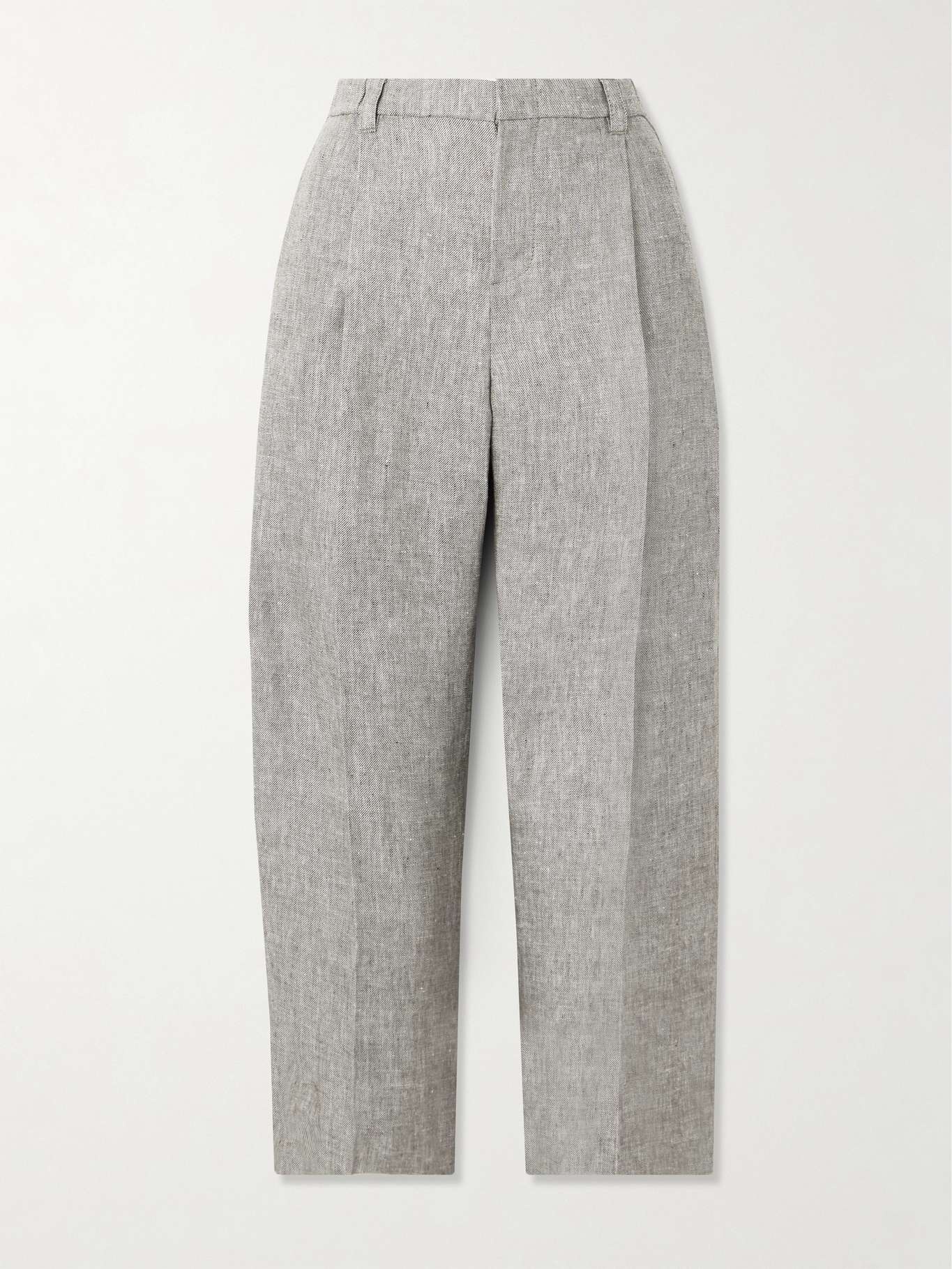 EDITORS'NOTES Brunello Cucinelli's pants are the kind that completes any outfit, though we think they look best alongside the matching blazer. Tailored from hemp and linen-blend, they're highlighted with pleats and have a classic cropped, straight-leg fit. SIZE & FIT Model measurements: - Fits true to size, take your normal size - Mid-rise, designed for a straight-leg fit - Cropped length - Partially elasticated at the waist for a comfortable fit - Mid-weight, non-stretchy fabric - Model is 177cm/ 5'10" and is wearing an IT 40 - Bust: 79cm/ 31" - Waist: 61cm/ 24" - Hip: 89cm/ 35" DETAILS & CARE - White and brown melange hemp and linen-blend - Concealed hook, button and zip fastening at front - 53% hemp, 47% linen - Dry clean