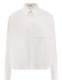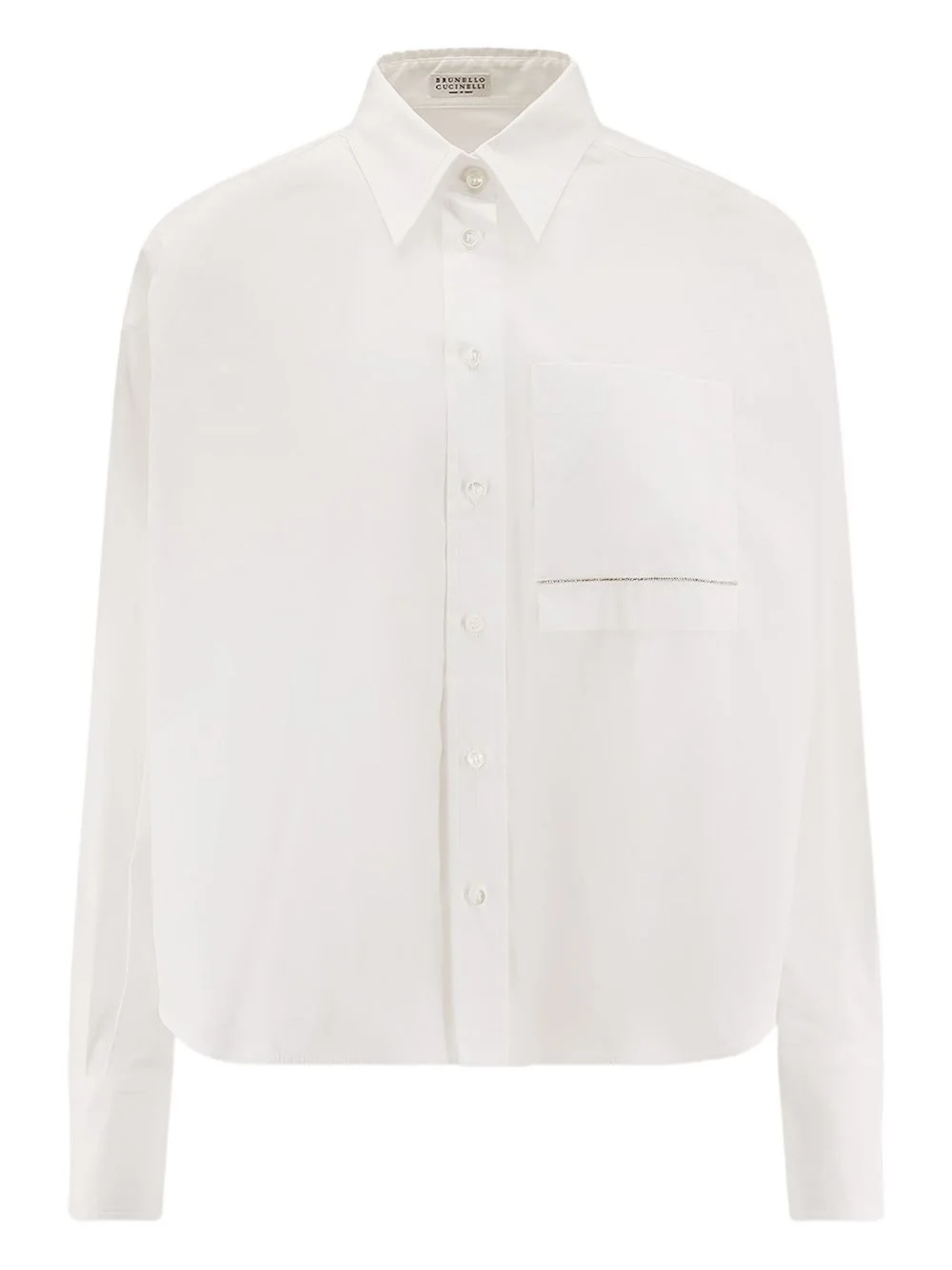 beaded-trim pocket shirt Highlights - White - Long sleeves - Button fastening - Chest pocket - Embellished pocket trim Imported Composition Fabric 100% Washing instructions Read Manufacturer Guidelines