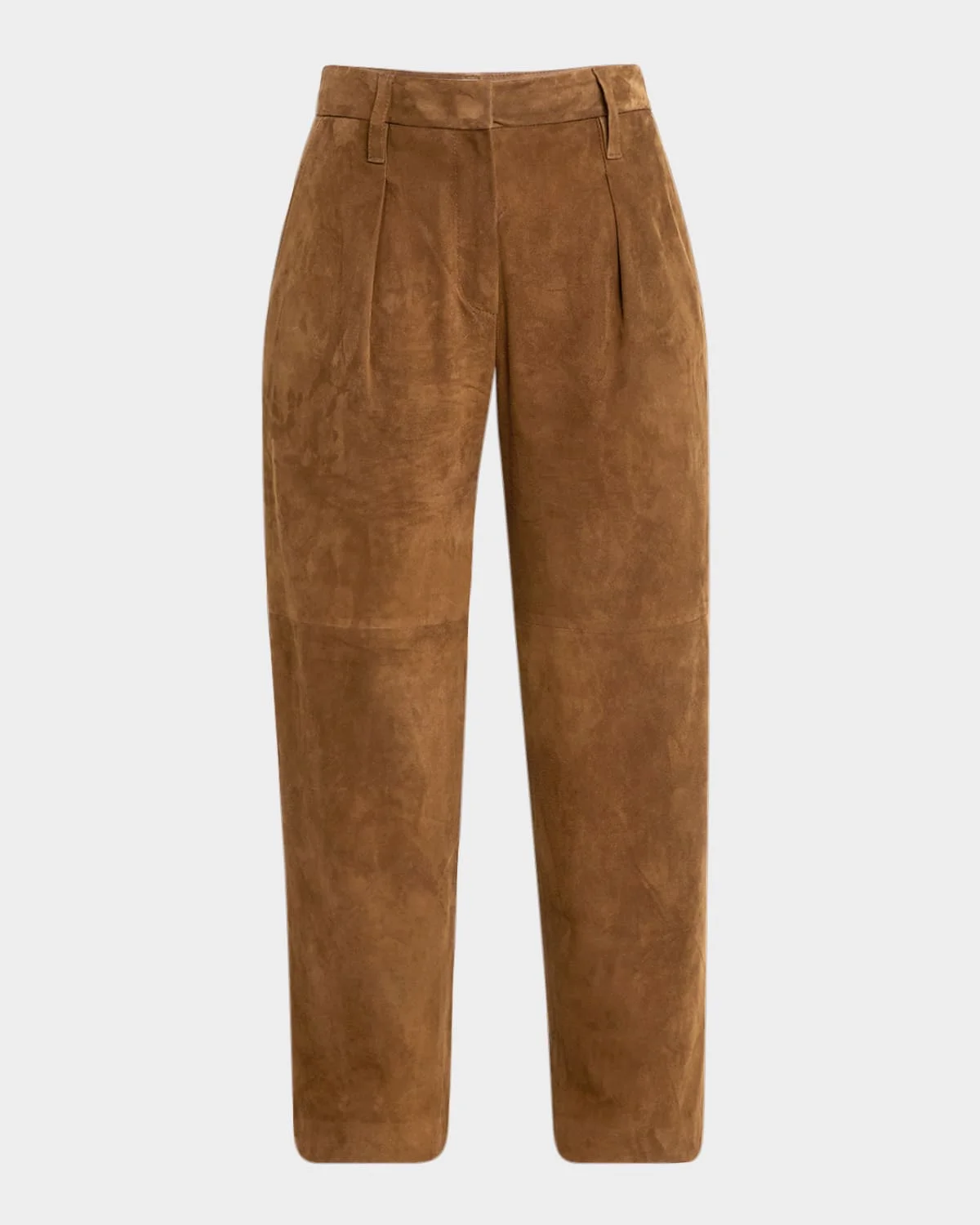 - Brunello Cucinelli straight-leg trousers in suede - Mid-rise; sits high on the hip - Double-pleated front - Four-pocket style - Tailored fit - Ankle length - Hook/zip fly; belt loops - Leather - Made in Italy