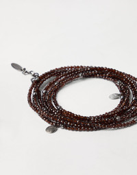 A sophisticated, feminine design characterizes the allure of this new Vetro Brown Wrap bracelet. Multifaceted beads, in a warm shade of brown with hints of amber, capture the light and embellish this jewel, that conveys an elegant feel with its essential design. The bracelet is made of a long single strand that can be wrapped multiple times around the wrist, for an elegant layered look. The accessory is complemented by a hook closure that is adjustable to different lengths. MATERIALS The faceted cut of the small Vetro Brown beads accentuates this accessory’s metallic reflections. DETAILS Adjustable length closure clasp 100% GLASS
