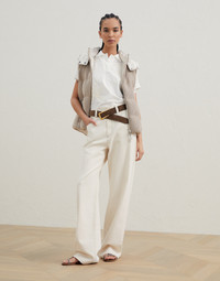 The excellence of Brunello Cucinelli yarns enriches this new cotton Dazzling yarn knit down vest, which is ideal for the transitional months between seasons. English rib knitting is paired with elegant paillettes to give this piece a precious and elegant appearance, while the drawstring hood and the elasticized hem represent stylish functional details. The lightweight goose down and feather fill provides this piece with added comfort and the right amount of warmth. Furthermore, a shiny monili insert, the iconic embellishment of the Brunello Cucinelli collections, illuminates the zipper pull with a sophisticated feminine note. MATERIALS With a full appearance that is also lightweight to wear, the pure cotton Dazzling yarn showcases sparkling paillettes that delicately illuminate this piece. DETAILS Two-way zip closure Water-resistant nylon lining Stand-up collar Lined hood and adjustable drawstring Patch hand pockets Drawstring hem Padding made from high-quality natural materials: 90% goose down, 10% goose feathers English rib Nickel-free monili decoration 96% COTTON, 4% POLYESTER