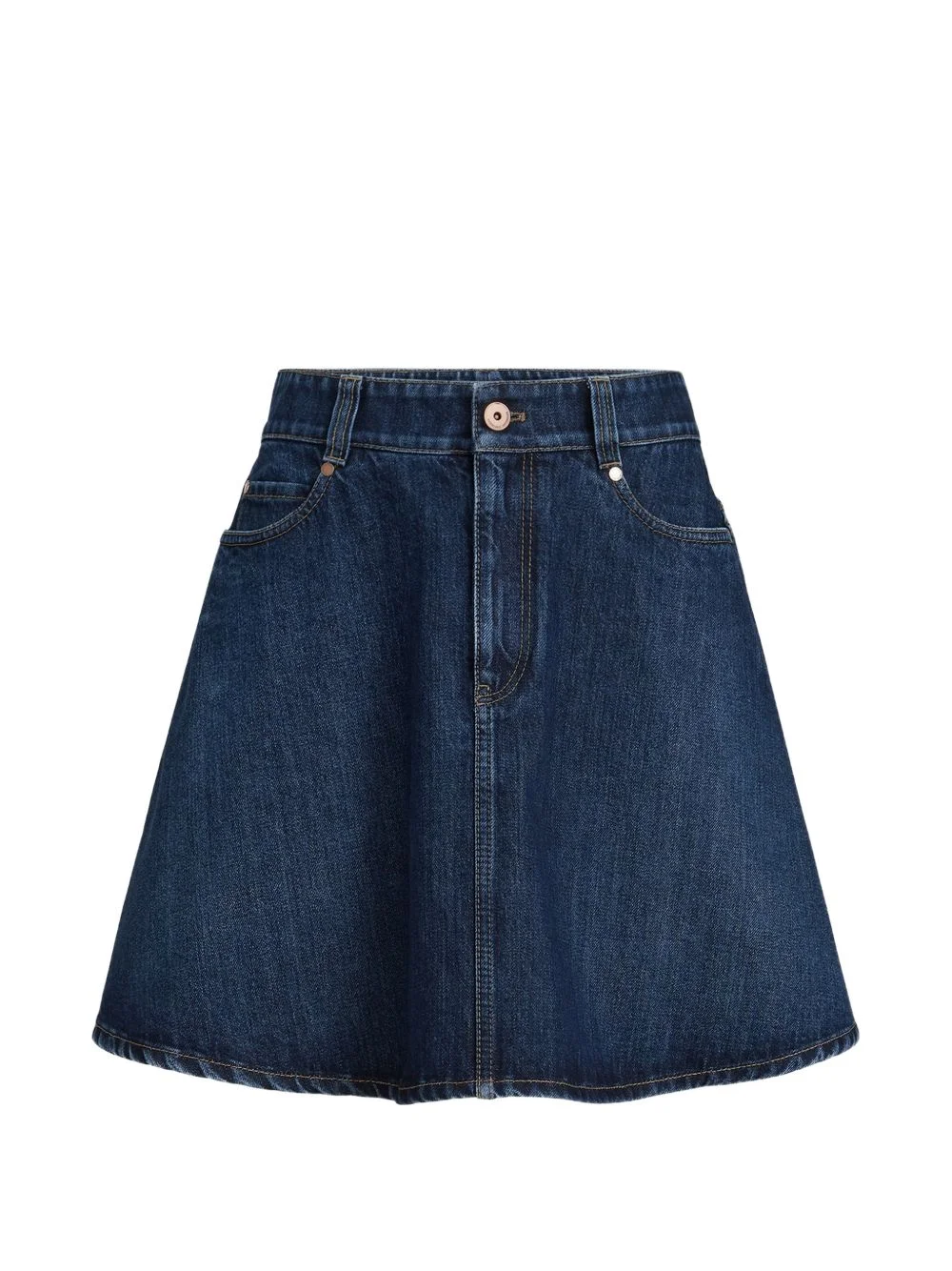 denim mini skirt Highlights - Denim blue - Cotton - Front button fastening - Belt loops - Thigh-length - Monili detail Made in Italy Composition Cotton 100% Washing instructions Read Manufacturer Guidelines