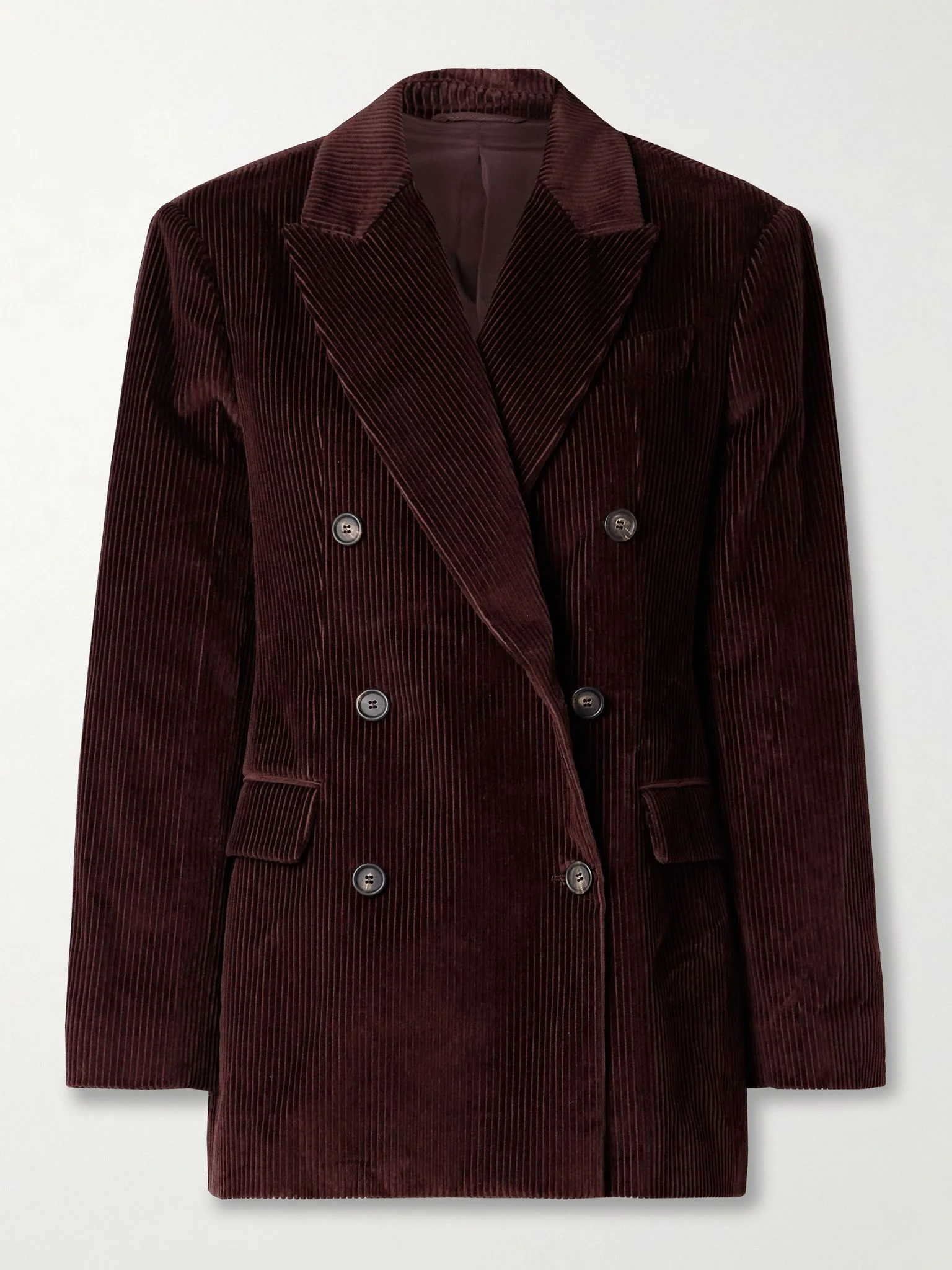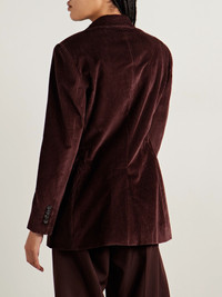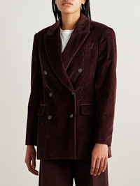 Brunello Cucinelli's blazer is designed in an oversized, double-breasted profile modeled on menswear styles. Tailored in Italy from plush cotton-corduroy, it comes in a versatile burgundy shade and has peak lapels that draw the eye to the padded shoulders. Size & Fit - Intended to be oversized; we recommend sizing down if you prefer a closer fit - Mid-weight, non-stretchy fabric - Model is 177cm/ 5'10" and is wearing an IT 40 Model measurements: - Bust: 81cm/ 31.75" - Waist: 63cm/ 24.75" - Hip: 91cm/ 36" Details & Care - Burgundy cotton-corduroy - Button fastenings through double-breasted front - 100% cotton; buttons: 100% horn (Water Buffalo); lining1: 74% acetate, 26% silk; lining2: 65% acetate, 35% polyester - Fully lined - Dry clean