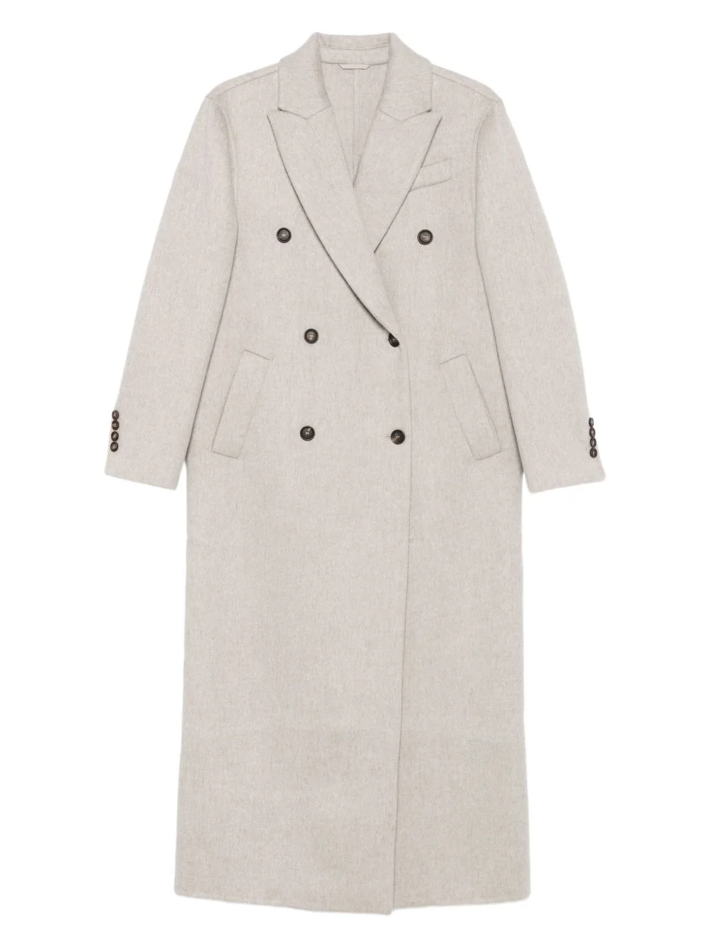 double-breasted cashmere coat Highlights - Grey - Cashmere - Double-breasted fastening - Buttoned cuffs - Long sleeves - Welt pockets Made in Italy Composition Lining: Acetate 74%, Silk 26% Outer: Cashmere 100%, Eco Brass 100% SIZE & FIT Model measurements Height 5 ft 10 in(1.78 m) Bust/Chest 33.46 in(85 cm) Hips 36.22 in(92 cm) Waist 23.22 in(59 cm) Washing instructions Dry Clean Only