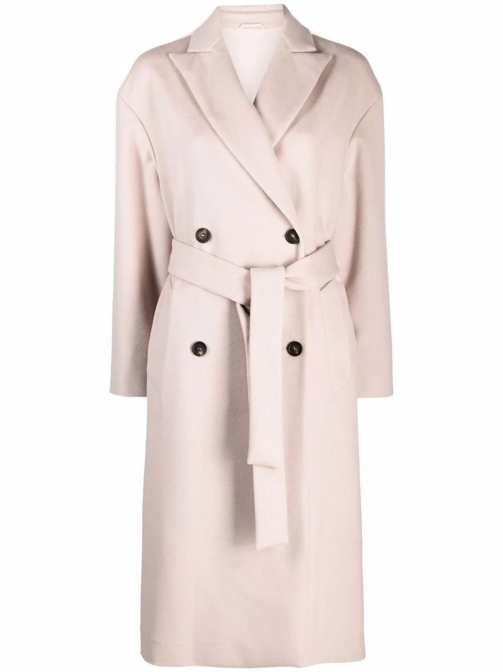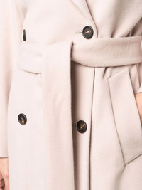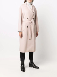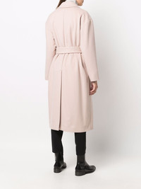 double-breasted wool-cashmere blend coat light pink wool-cashmere blend peak lapels double-breasted button fastening belted waist long sleeves two side slit pockets straight hem central rear vent Made in Italy Composition Outer: Wool 96%, Cashmere 4% Lining: Cupro 100%, Acetate 74%, Silk 26% SIZE & FIT Model measurements Height 5 ft 10 in(1.78 m) Bust/Chest 33.07 in(84 cm) Hips 35.82 in(91 cm) Waist 26.96 in(68.5 cm) FittingInformation This piece fits true to size. We recommend you get your regular size Cut for a loose fit. Comes with an adjustable belt for a flexible fit at the waist Made with a mid-weight non-stretch fabric Washing instructions Dry Clean Only