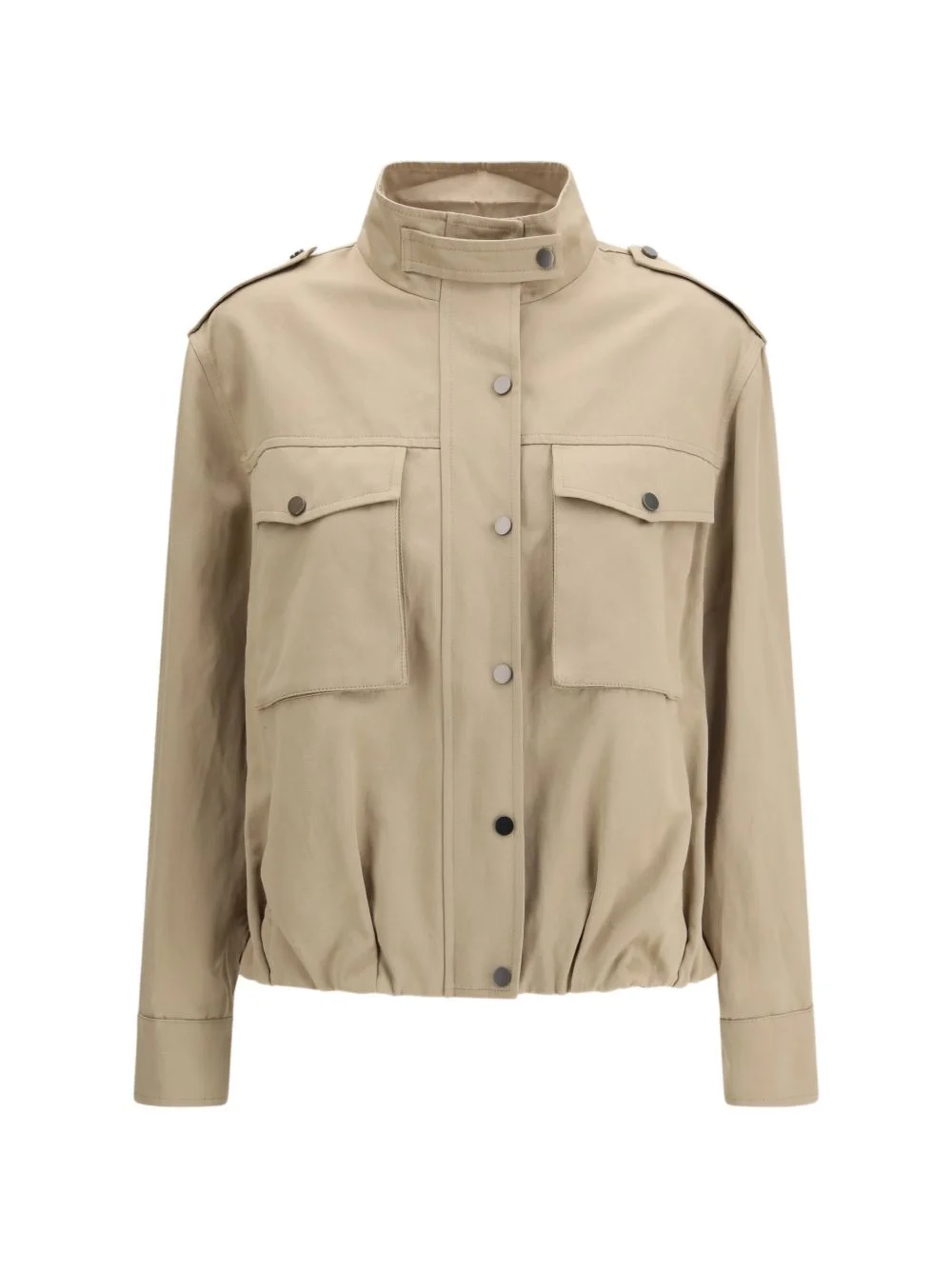 pocket button jacket Highlights - Beige - Stand collar - Front button fastening - Front flap pockets - Shoulder epaulettes - Buttoned cuffs Made in Italy Composition Outer: Cotton 69%, Linen/Flax 31% Lining: Acetate 74%, Silk 26% Washing instructions Read Manufacturer Guidelines