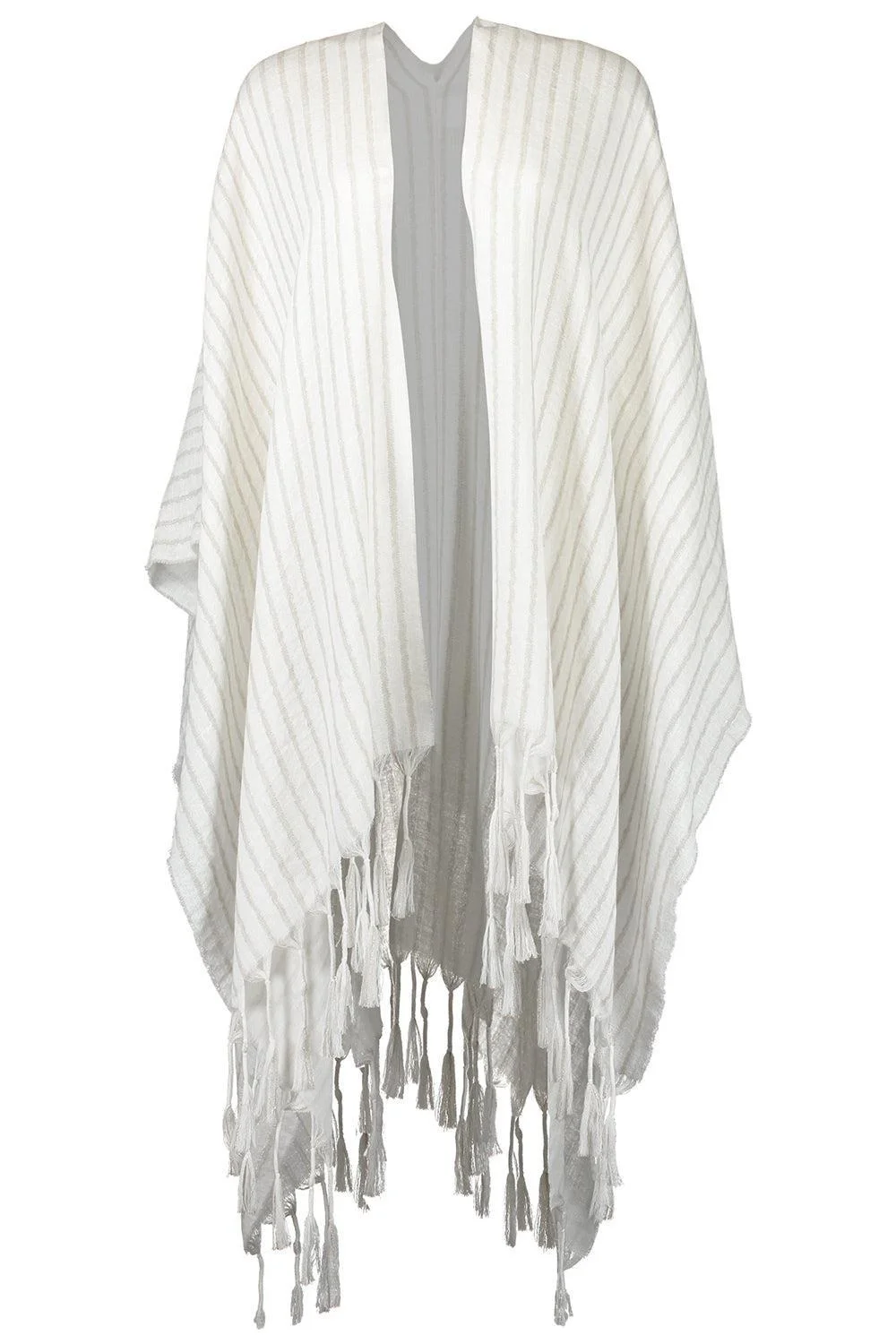 DETAILS AND INSIGHT Brunello Cucinelli double striped scar in white/beige. Lurex, Cashmere Dry Clean Made in Italy Style MSCDVSP03-CZU89