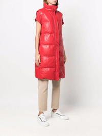 down-padded leather gilet coat