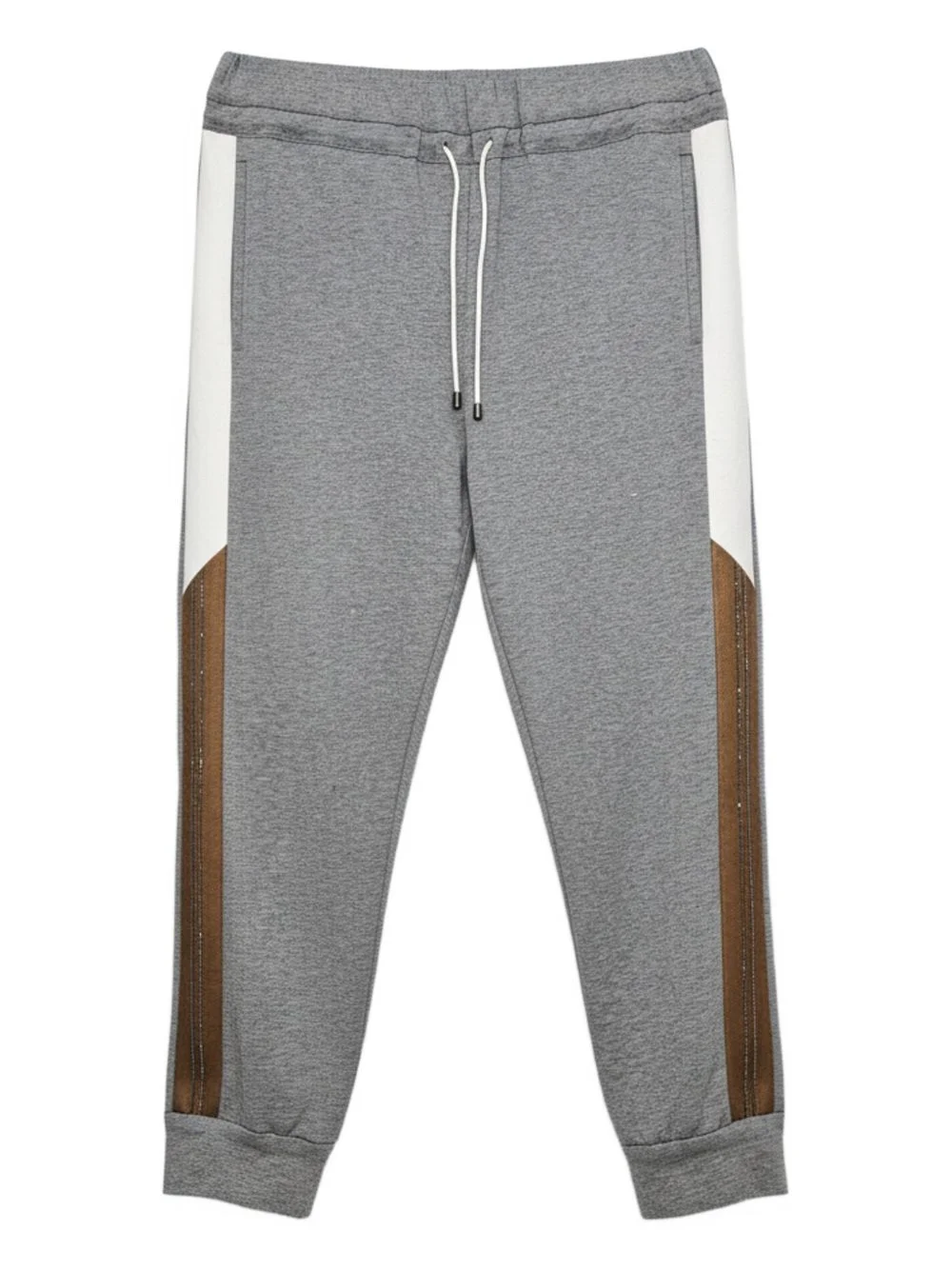 drawstring-waist track pants Highlights - Grey - Elasticated waistband - Drawstring fastening - Side welt pockets - Two back welt pockets - Side-stripe detailing Made in Italy Composition Cotton 98%, Elastane 2% Washing instructions Read Manufacturer Guidelines
