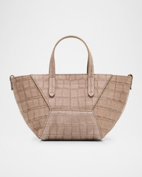 Duo Mini Croc-Embossed Suede Shopper Tote Bag