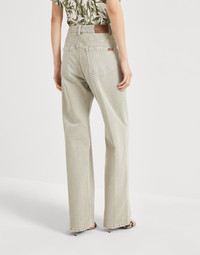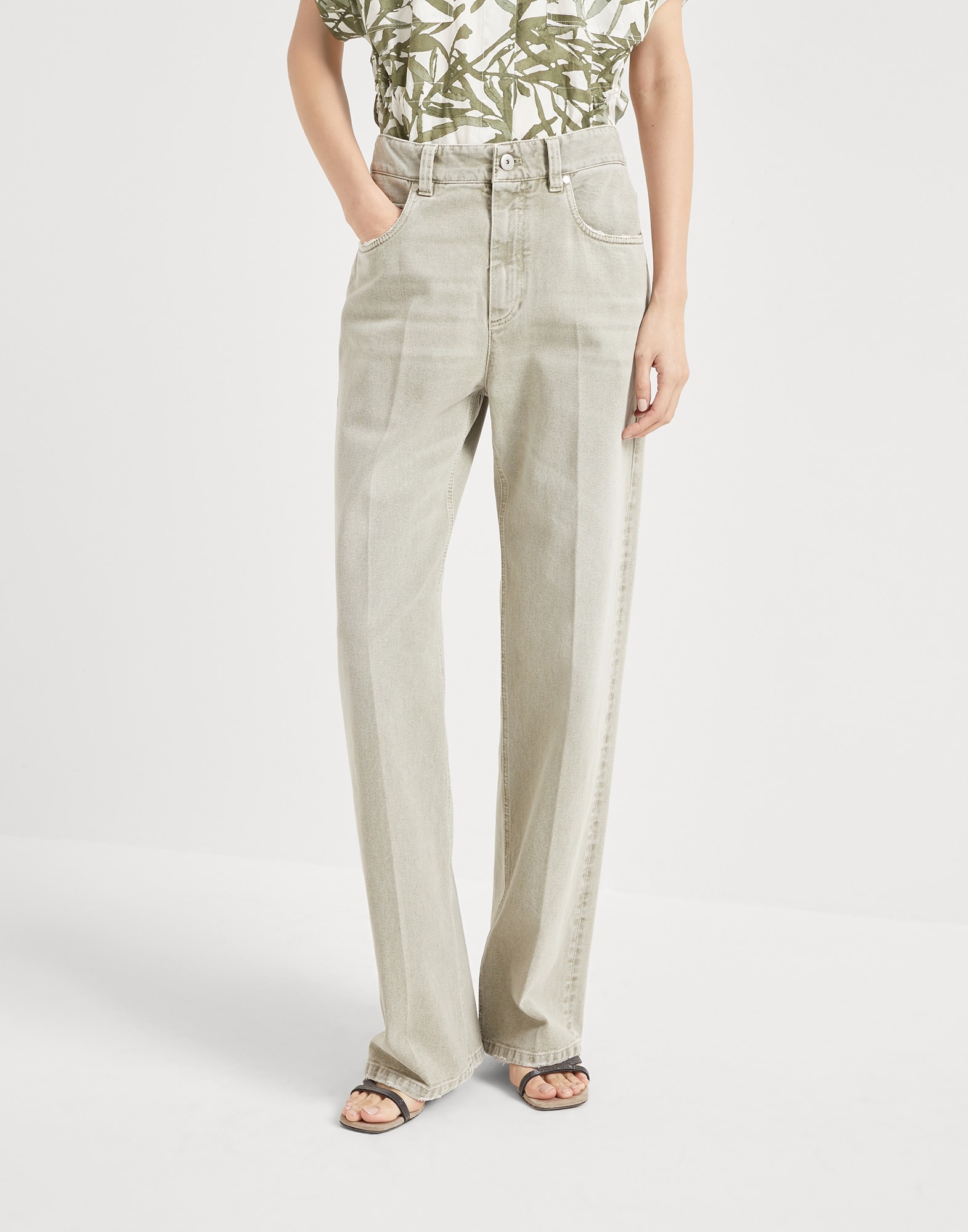 Casual proportions and refined details come together in perfect harmony in these Contemporary Loose trousers. The regular fit in the hips develops into a wide, comfortable leg, giving the garment a contemporary allure. MATERIALS The dyeing process carried out on the finished garment gives the pure cotton denim a delicate color with a slightly irregular appearance, creating light shading on the surface. DETAILS Zip closure with button Front pockets with watch pocket Back patch pockets 100% COTTON