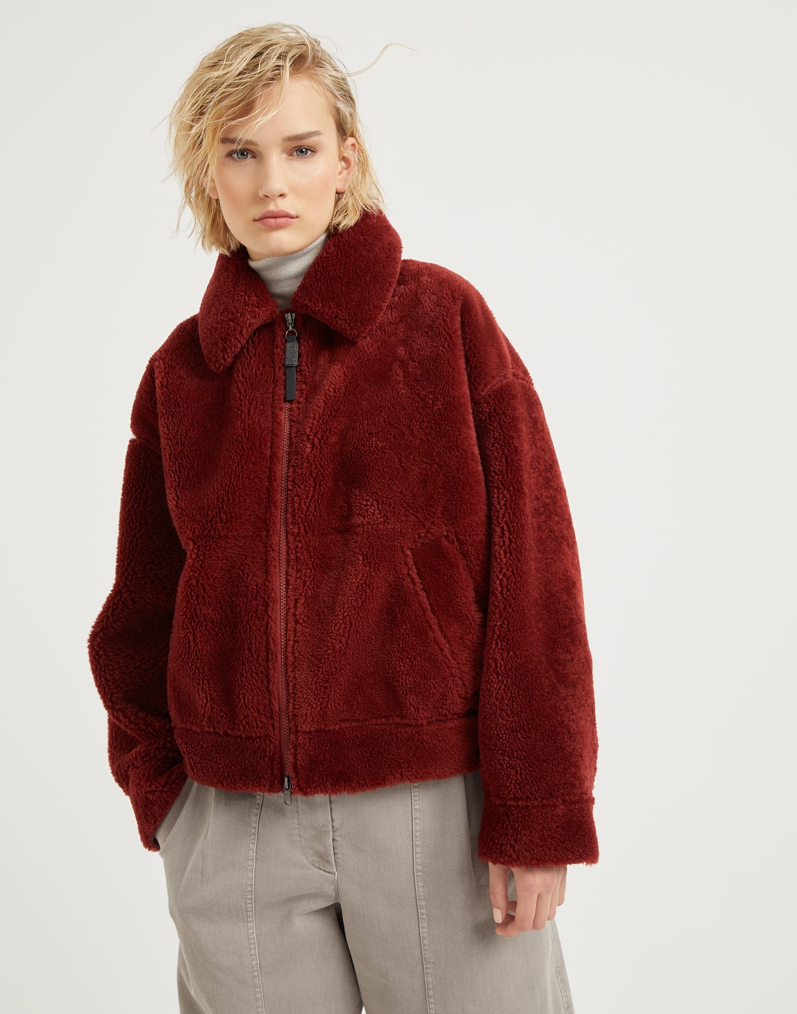 A casual attitude and iconic proportions are combined with refined materials in this Curly shearling outerwear jacket. The exterior showcases an ultra-soft nappa surface with a slightly worn, retro look, while the interior features the typical plush, full appearance of fleece with a wintry feel. The sophisticated embroidery of fine rows of monili along the zipper closure adds a feminine sparkle in true Brunello Cucinelli style. MATERIALS Refined Curly shearling characterizes the style of this outerwear jacket with an elegant touch: the leather’s plush, warm texture showcases a curly effect, the result of a special finish that accentuates its full appearance. DETAILS Two-way zip closure Silk-blend crepe lining Hand pockets Nickel-free monili decoration SHEARLING