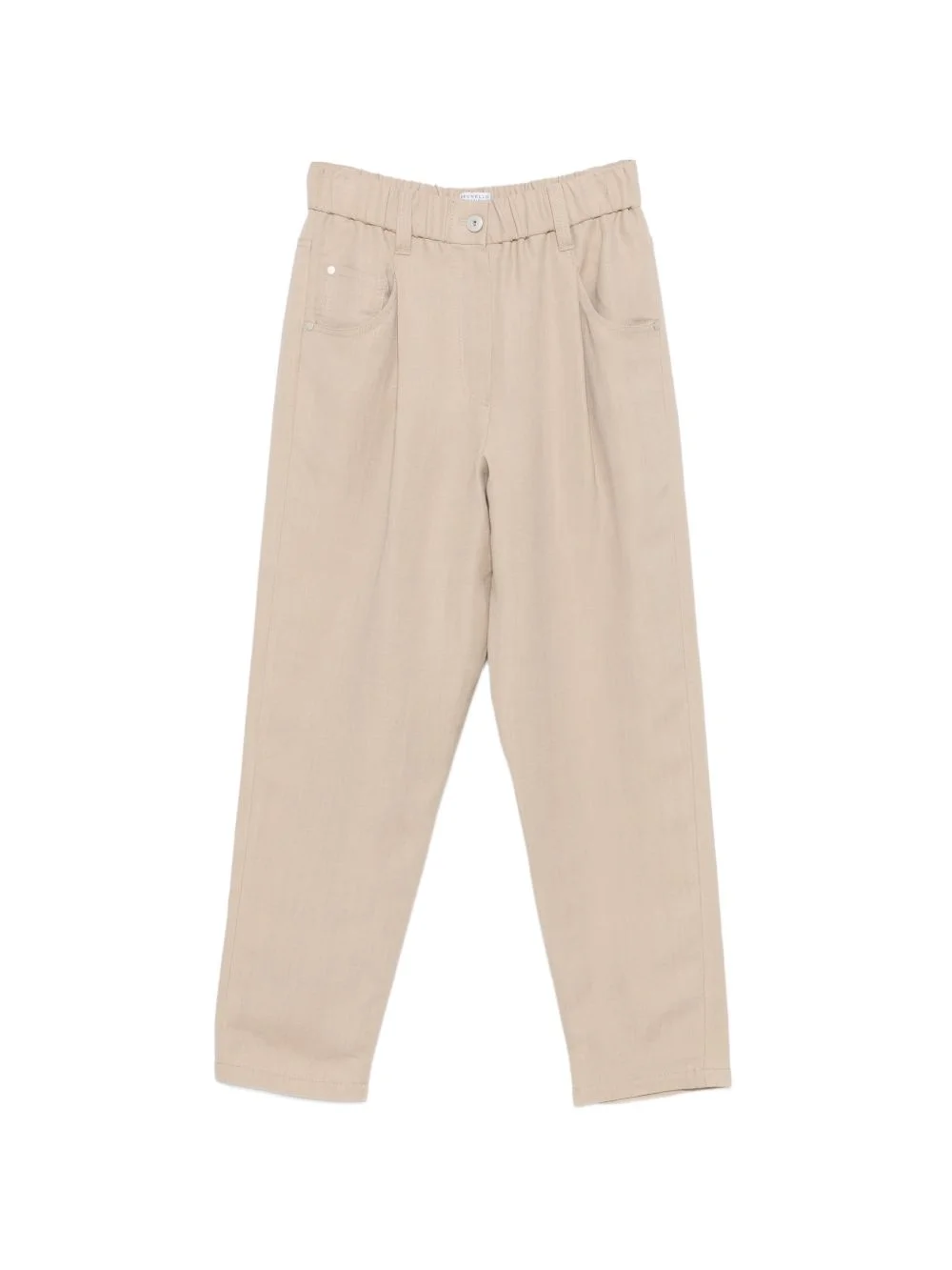 elastic-waist trousers Highlights - Sand beige - Classic five pockets - Elasticated waistband - Button closure Made in Italy Composition Outer: Viscose 72%, Linen/Flax 28% Lining: Acetate 65%, Polyester 35% Washing instructions Dry Clean Only