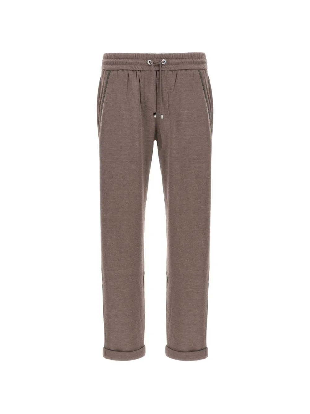 elasticated monile detail trousers Highlights - Brown - Drawstring - Elastic waistband - Pockets - Turn-up hem Made in Italy Composition Cotton 67%, Silk 31%, Nylon 2% Washing instructions Hand Wash
