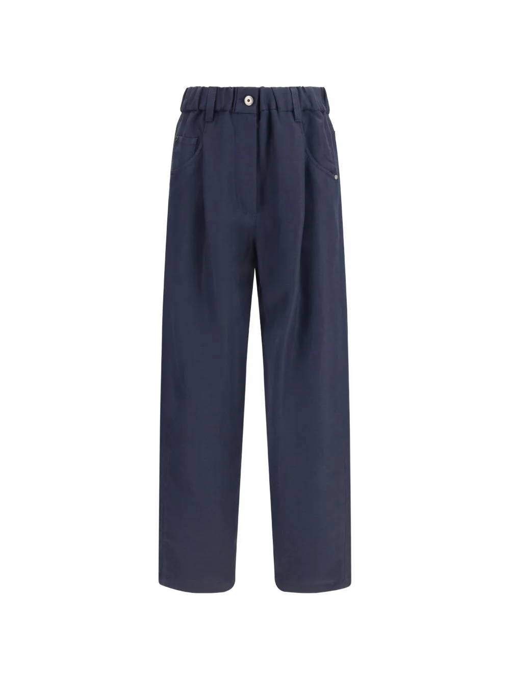 Elasticated trousers Highlights - Blue - Belt loops - Elasticated waistband - Rear welt pockets - Button closure - Slip pockets Made in Italy Composition Viscose 72%, Linen/Flax 28% Washing instructions Read Manufacturer Guidelines