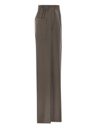 elasticated trousers Highlights - Light brown - Elastic waistband - Back patch pockets Made in Italy Composition Outer: Virgin Wool 75%, Polyamide 23%, Spandex/Elastane 2% Lining: Polyester 36%, Recycled Acetate 32%, Cellulose 32% Washing instructions Read Manufacturer Guidelines