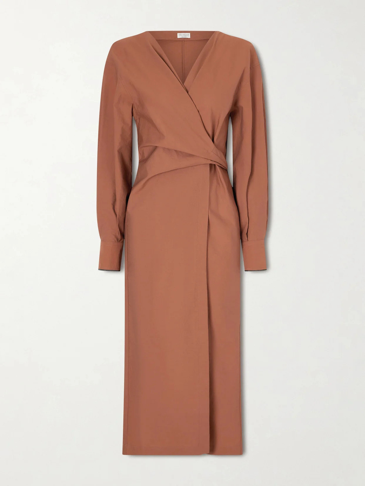 Brunello Cucinelli's dress is endlessly wearable. Made in Italy from soft cotton-blend, it has a wrap ties and Monili beads at the cuffs for subtle sparkle. Wear yours with pumps and a clutch.
