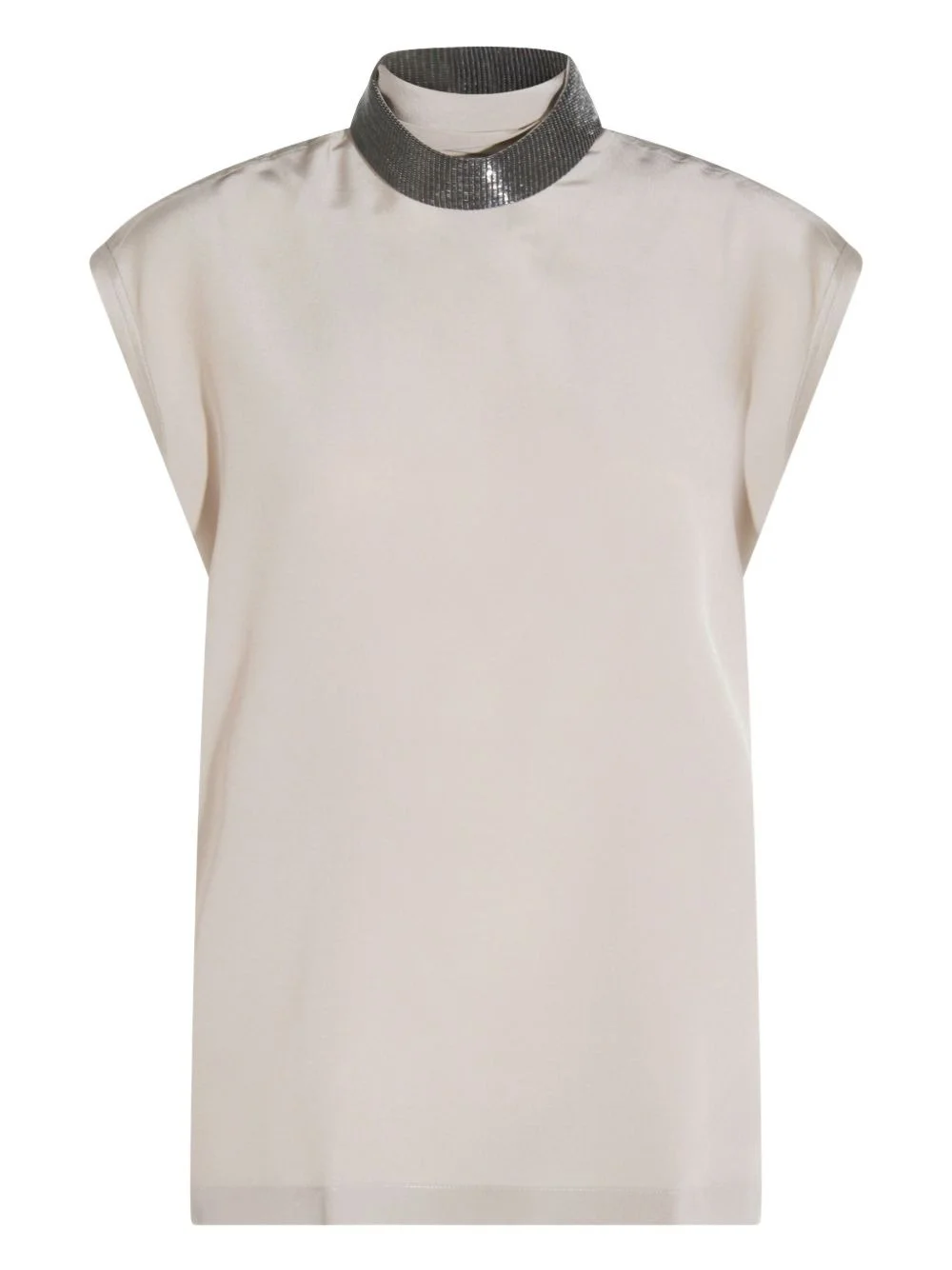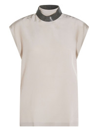 embellished high-neck top Highlights - Silver beige - Silk - High neck - Sleeveless - Embellished collar - Straight hemline Made in Italy Composition Cotton 100%