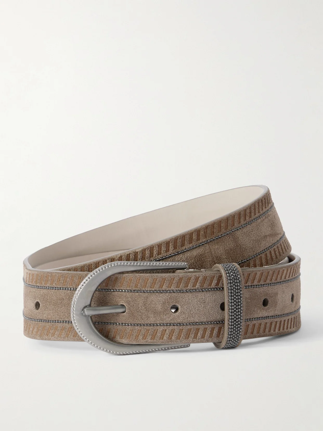 Brunello Cucinelli's belt has been expertly made at the brand's factory in Solomeo, Italy. It's made from suede and embellished with the brand's signature Monili beads.