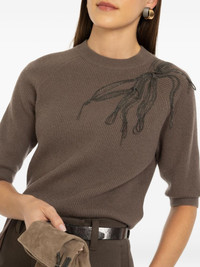 embroidered short-sleeve sweater Highlights - Brown - Ribbed knit - Short sleeves - Raglan sleeves - Embroidered embellishment - Crew neck Made in Italy Composition Cashmere 100% Washing instructions Read Manufacturer Guidelines