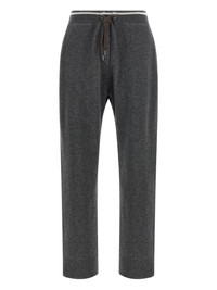 ribbed drawstring trousers Highlights - Grey - Ribbed knit - Drawstring waistband - Side pockets - Straight leg Made in Italy Composition Virgin Wool 60%, Cashmere 30%, Silk 10% Washing instructions Read Manufacturer Guidelines