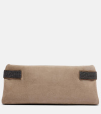 Brunello Cucinelli's monili beading is made from nickel-free brass to create a sparkling effect on each item. Crafted in Italy from suede, the Essence Small clutch features a magnetic fastening and an internal zipped pocket. Product Details - Material: calf leather (suede) - Lining: calf leather - Made in Italy - Designer color name: Ice - Item color: gray - Closure: magnetic fastening - Internal details: internal zipped pocket - Item number: P01037904 Size & Fit - Depth 6cm-2.5" - Clutch height 14cm-5.5" - Clutch width 34cm-13.5"