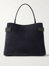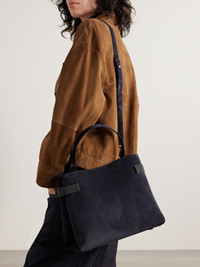 Brunello Cucinelli designs with minimalism and quality materials at the forefront, so you'll be able to wear and love its pieces for years. This shoulder bag is made from velvety suede and has a spacious, compartmented interior with a zipped pouch and signature Monili beads decorating the gusseted sides. Attach the longer strap to wear it cross-body and stow all your everyday essentials inside, including a continental wallet, sunglasses and a few cosmetics for touch-ups. Details & Care - Navy suede (Calf) - Top handle, detachable adjustable shoulder strap - Internal zipped pouch - Leather lining - Magnetic-fastening tab at open top - Designer color: Night Sky - Comes with dust bag - Weighs approximately 2.6lbs/ 1.2kg