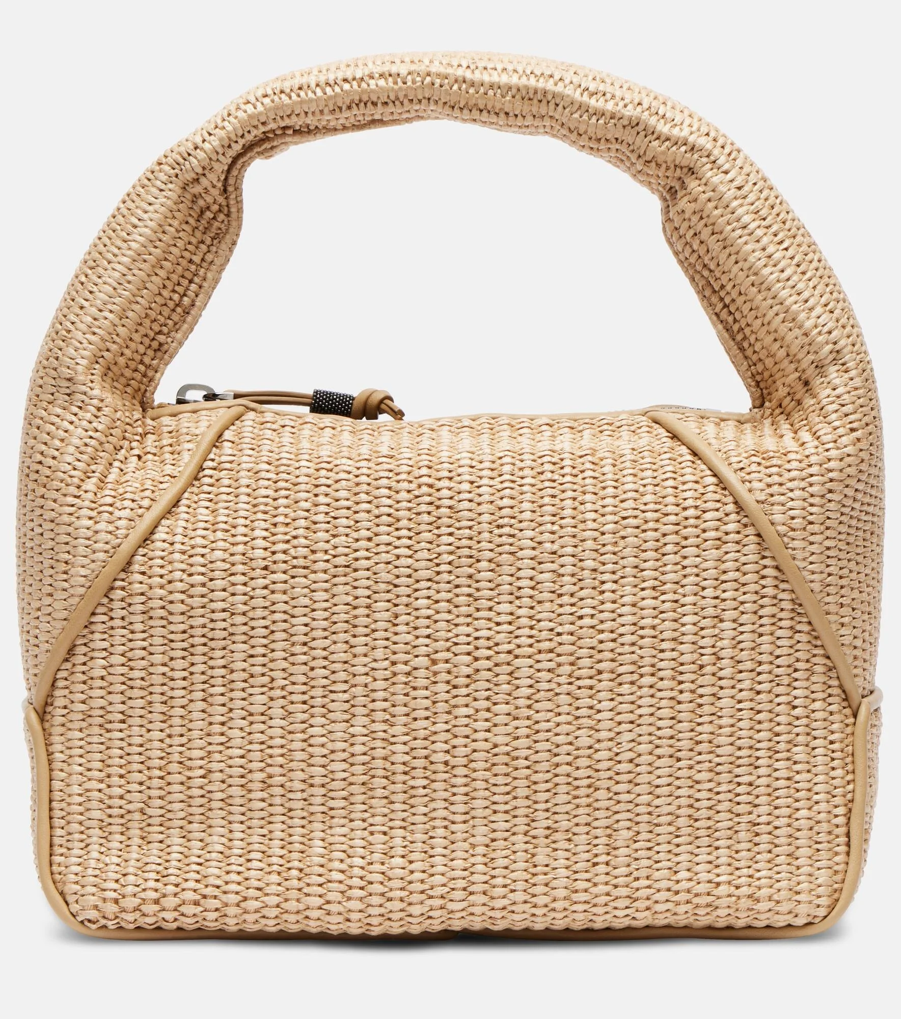 Brunello Cucinelli's designs are created in Solomeo, where art and traditions are woven into the house's every fiber. The Essence Small tote bag features a leather trim, and its zipper puller is embellished with Monili beads. Product Details - Material: fabric - Lining: fabric - Made in Italy - Designer color name: Corda - Item color: beige - Closure: zipped top - Includes: dust bag - Top handle - Item number: P01038028 Size & Fit - Height 17cm-6.5" - Width 26cm-10" - Depth 11cm-4.5" - Length of handle 40cm-15.5"
