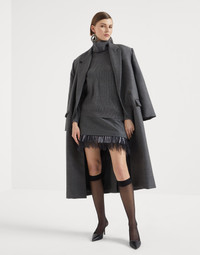 Virgin wool and cashmere flannel couture mini skirt with detachable dazzling feather insert