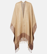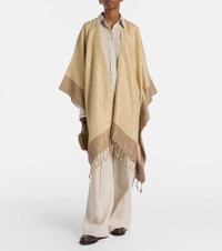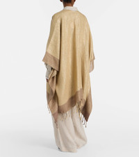 Fringed linen-blend lamé poncho