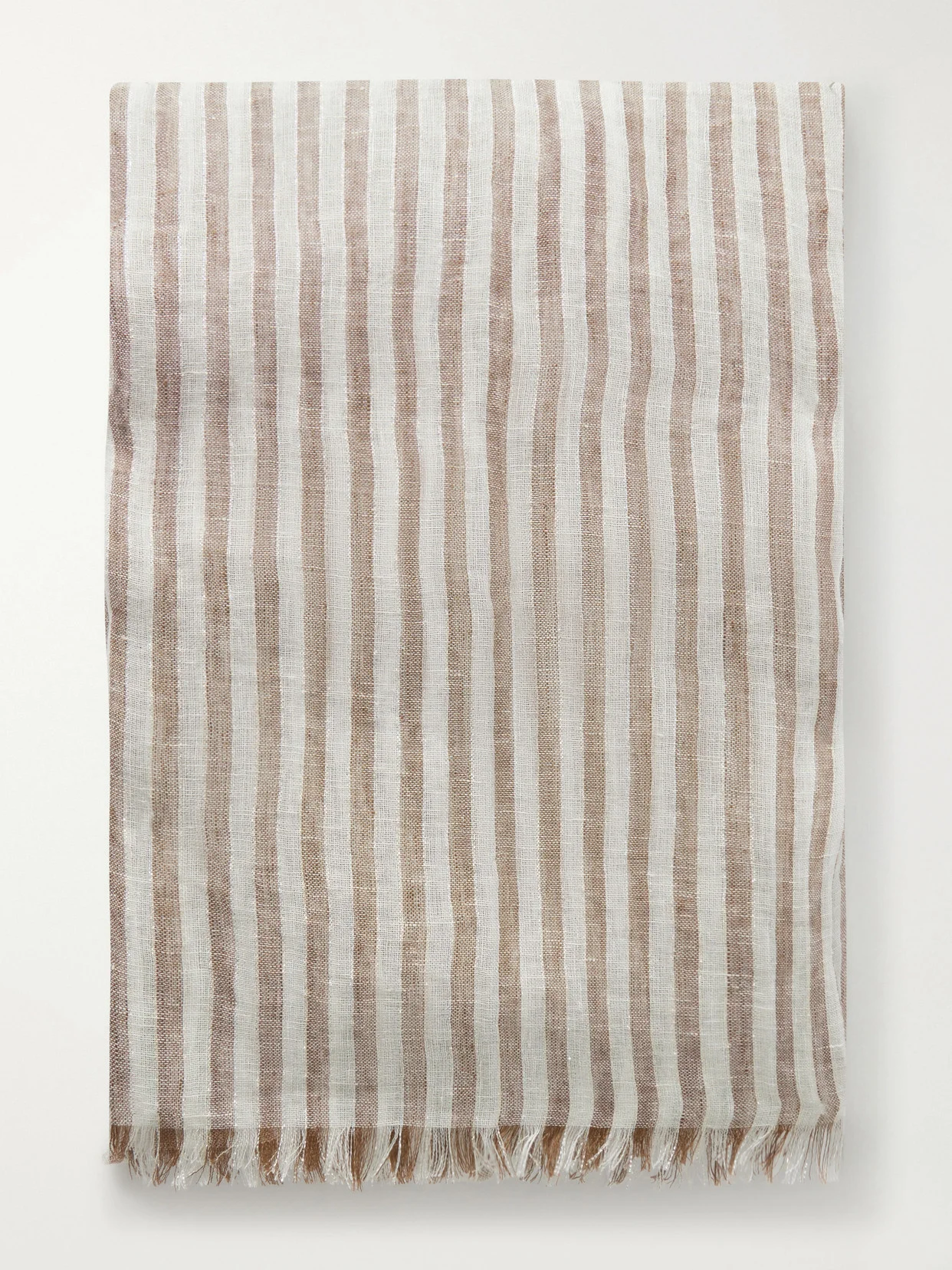 Fringed Striped Linen-blend Scarf