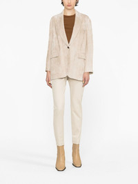 gabardine cropped trousers Embracing Brunello Cucinelli's understated aesthetic, these trousers are made from stretch-cotton gabardine and shaped to a slim, cropped silhouette. The beige hue nods to the brand's favoured muted palette. Highlights - Beige - Stretch-cotton - Gabardine weave - Mid-rise - Belt loops - Concealed front fastening - Two side slit pockets - Two rear welt pockets - Cropped leg Made in Italy Composition Outer: Cotton 97%, Spandex/Elastane 3% Lining: Acetate 65%, Polyester 35% SIZE & FIT Model measurements Height 5 ft 10 in(1.78 m) Bust/Chest 30.7 in(78 cm) Hips 34.64 in(88 cm) Waist 23.22 in(59 cm) FittingInformation Designed with a cigarette cut, these trousers allow for a close fit at the waist and offer an unrestricted fit through to the ankle Made from a midweight stretch fabric, this piece offers elasticity and flexibility when worn This piece fits true to size – take your usual size Washing instructions Dry Clean Only