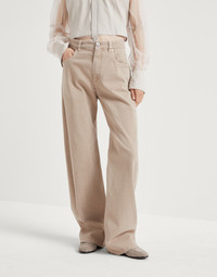 Casual styling and refined details characterize these garment-dyed comfort denim Loose pants. Relaxed and slightly loose, straight lines pair perfectly with the soft and versatile appearance of the fabric. A precious monili tag on the back pocket complements the garment with a sparkling, feminine note, in pure Brunello Cucinelli style. MATERIALS Garment-dyed comfort cotton denim showcases a unique texture characterized by a twill weave that gives the color depth and, at the same time, creates delicate shading. A small percentage of synthetic fiber helps to make the fabric comfortable to wear. DETAILS Zip closure with button Front pockets with watch pocket Back patch pockets Nickel-free monili decoration 98% COTTON, 2% ELASTANE