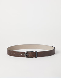 Refined materials and elegant details characterize this textured calfskin belt. Precious monili, the iconic embellishment of the Brunello Cucinelli collections, is paired with the leather’s extremely soft hand and typical grain: the belt loop and the edge of the buckle add a delicate note to enrich every look of the season. MATERIALS The manufacturing of the textured leather creates a soft, rich hand that highlights the material’s natural grain. All of the metal components are coated with precious materials that completely replace Nickel, enriching the excellence of every single detail. DETAILS Belt height approx. 3.5 cm (1.38") Nickel-free monili decoration REAL LEATHER