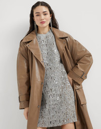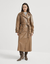 Refined materials and precious details update this polished nappa leather trench in a bold, contemporary way. The iconic design retains distinctive elements such as the wide lapel collar, rear yoke, button closure and d-ring belt for timeless style. The large hand pockets in the front with a utilitarian feel evoke the world of travel and exploration, while the shiny monili embroidery on the cuffs adds a sparkling touch in true Brunello Cucinelli style. MATERIALS The refined leather uses delicate treatments that allow its natural appearance to be appreciated. DETAILS Snap closure Detachable ring belt Silk-blend crepe lining Removable neck strap Patch hand pockets with flap and button Snap cuffs Vent at bottom Nickel-free monili decoration REAL LEATHER